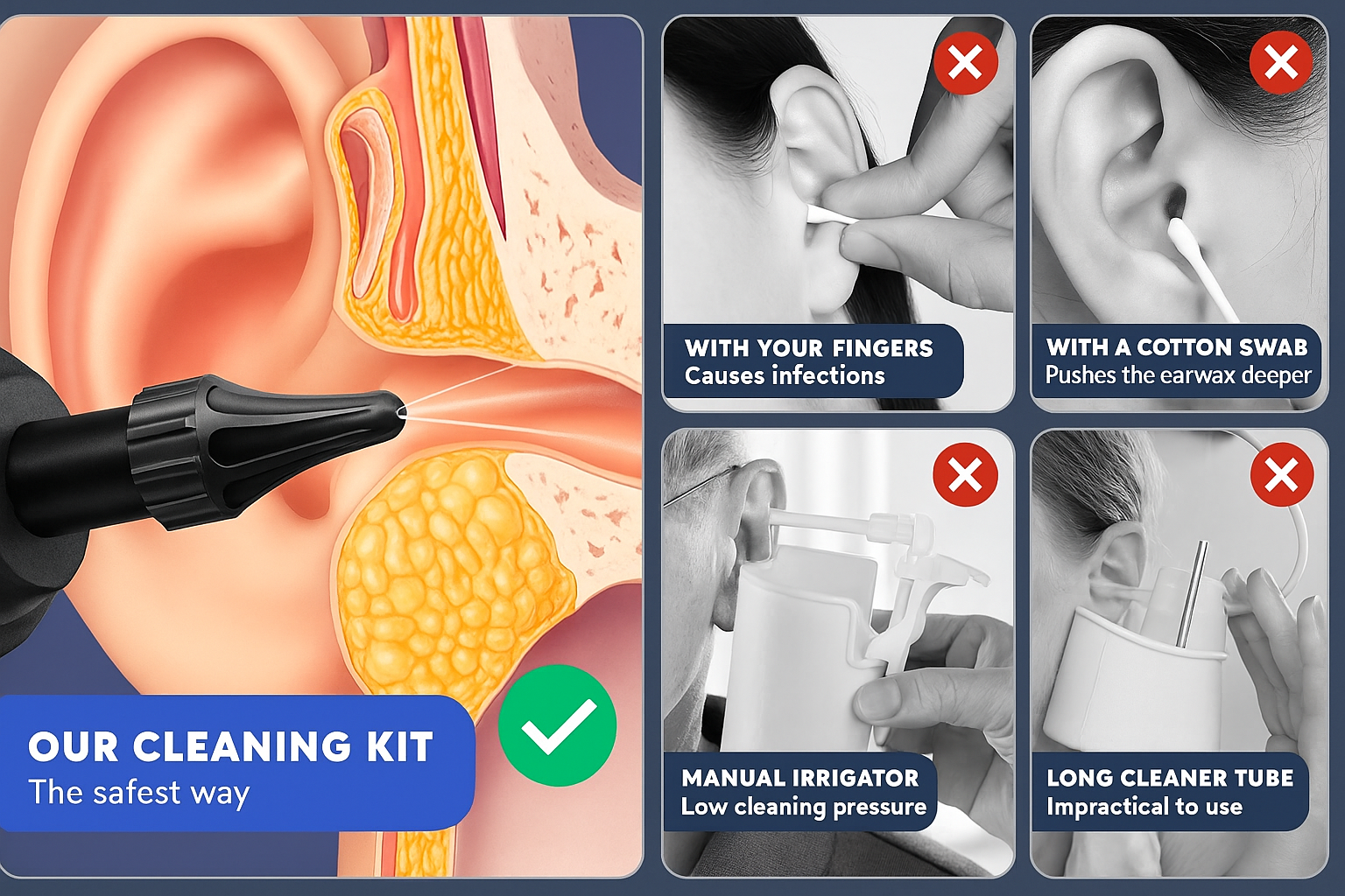 Take care of your ears with this electric cleaning kit, designed to provide safe, fast, and effective cleaning using a water-based irrigation system. Whether you experience frequent earwax buildup or simply want to maintain good ear hygiene, this device is a must-have!
